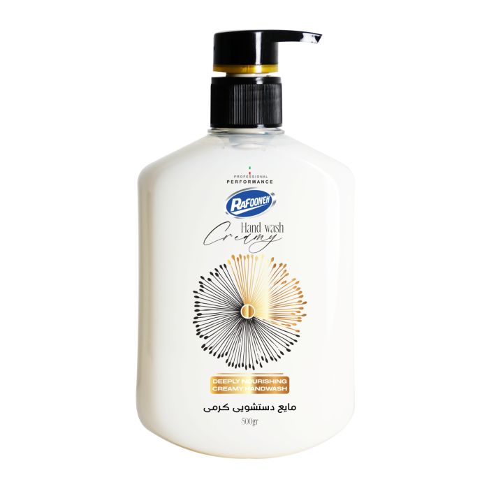 مایع دستشویی کرمی رافونه کف غلیظی در دستان شما ایجاد می کند که تاثیر زیادی در پوست دستان شما ایجاد میکند.