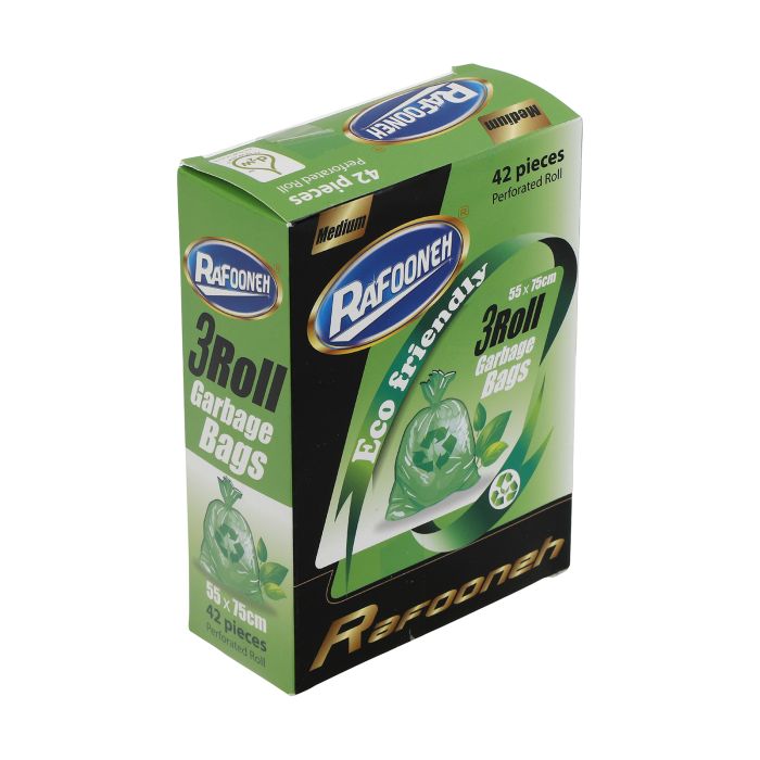 کیسه زباله سه رولی تجزیه پذیر سبز متوسط ابعاد 75 × 55 سانتی متر رافونه