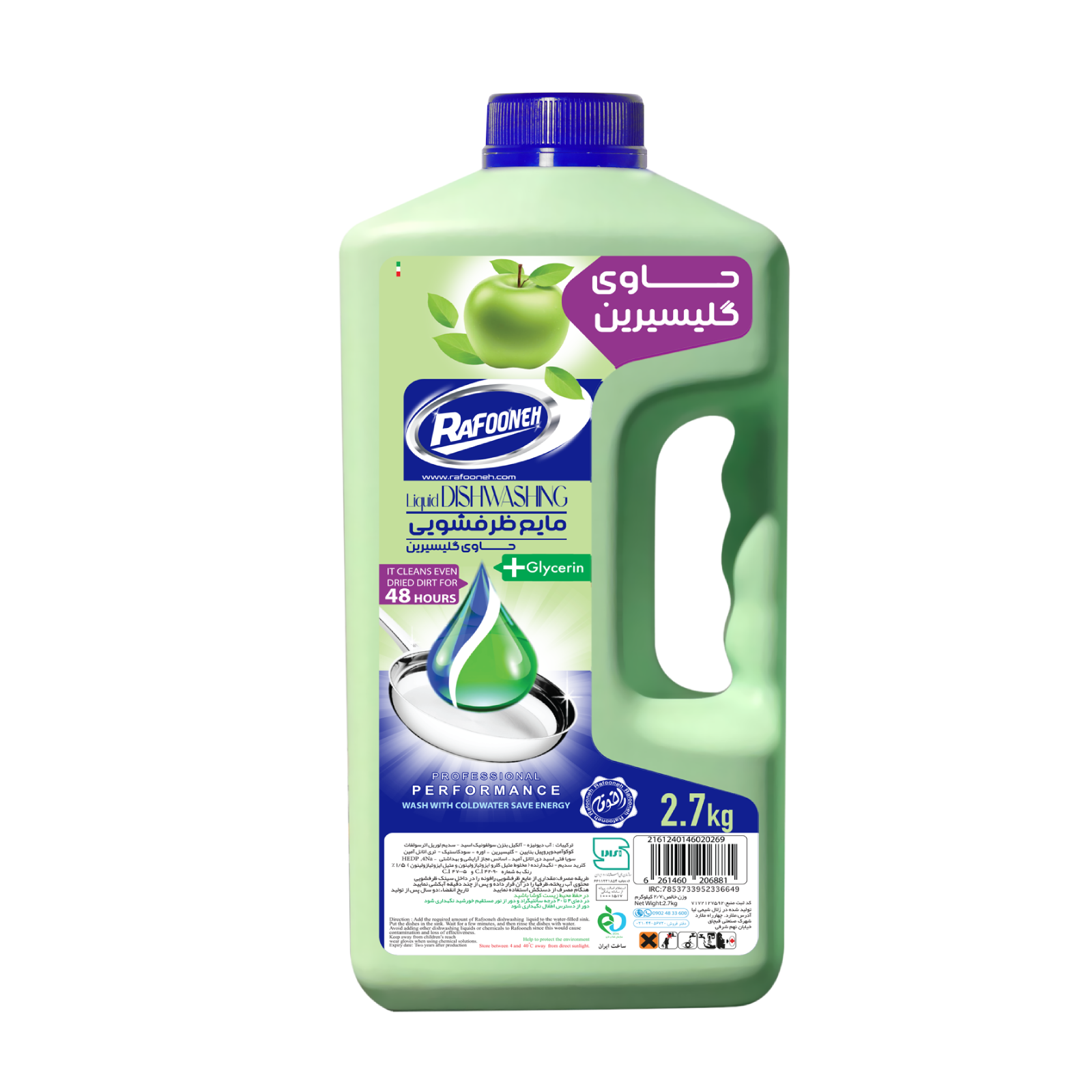مایع ظرفشویی گلیسیرینه سبز ۲/۷ کیلوگرمی با رایحه سیب رافونه